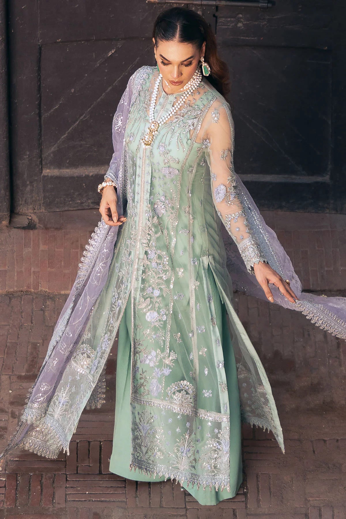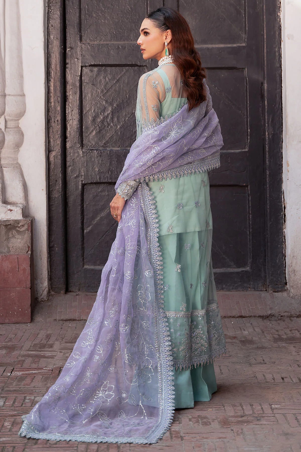 This stunning 3-piece luxury dress is a true blend of elegance and style. The embroidered net front and back, coupled with the beautifully crafted embroidered patches for the front and back daman, add intricate detail to this sophisticated ensemble. The embroidered net sleeves, along with the delicate embroidered patches, enhance the delicate and graceful look. The dress is complemented with an embroidered organza dupatta, featuring exquisite pallu patches that elevate its luxurious appeal. Paired with a dyed silk trouser, this dress offers both comfort and opulence. Perfect for upscale occasions, this piece is designed to make a statement.