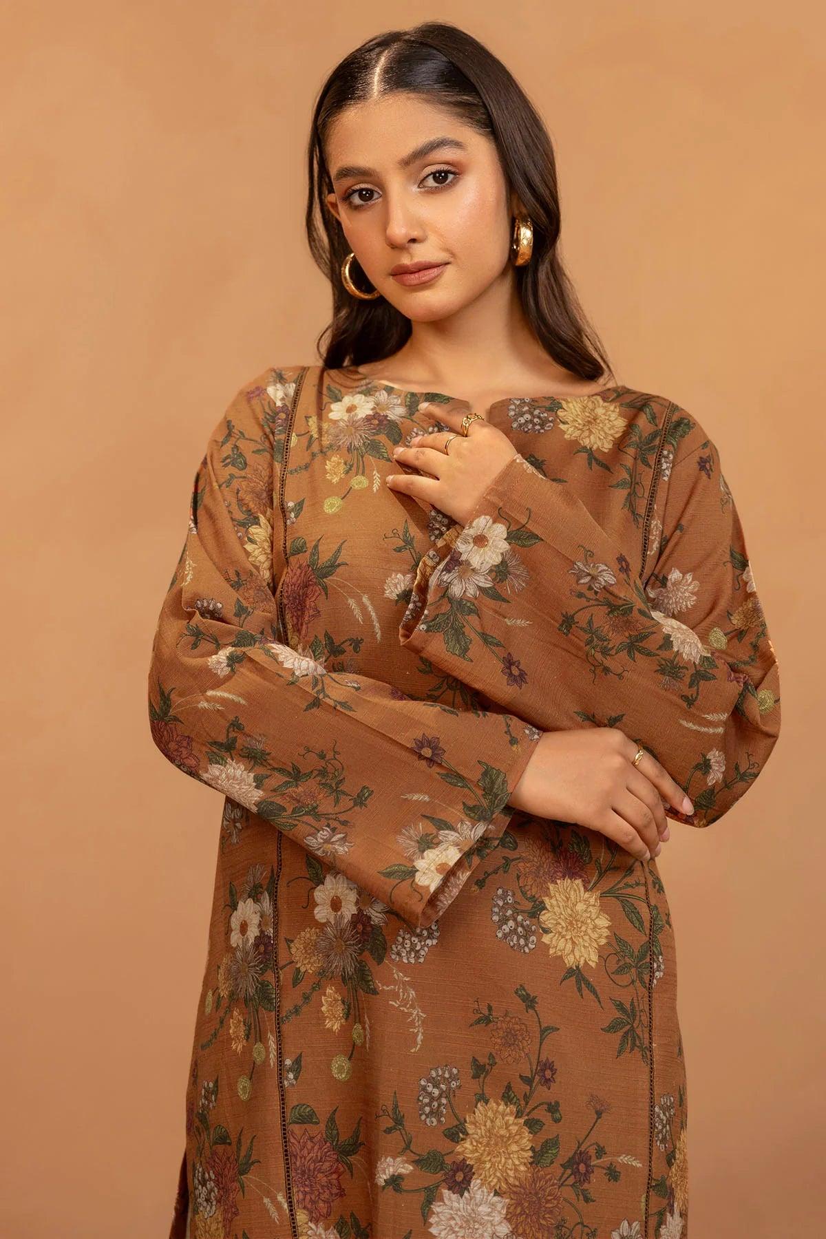 Bring a touch of earthy elegance with this potter’s clay 2-piece set from the Lexzari collection. The digital printed khaddar shirt, rendered in a warm potter’s clay hue, exudes natural sophistication. Paired with a matching khaddar trouser, this outfit offers a perfect balance of comfort and style, ideal for any occasion. Lexzari’s signature craftsmanship shines through, making this ensemble a timeless addition to your wardrobe.