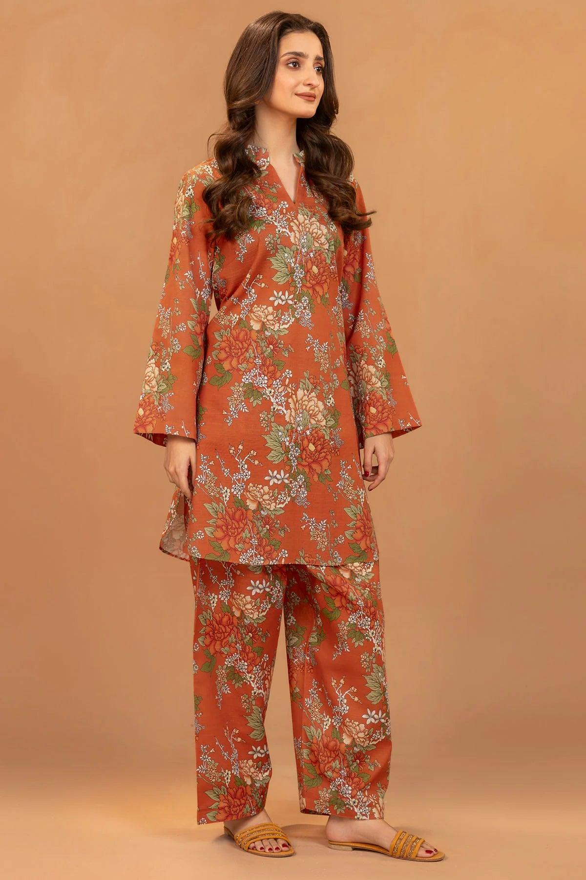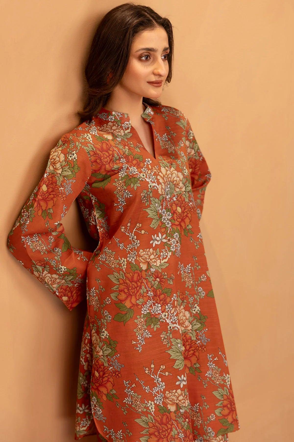 The Lexzari collection introduces this stunning 2-piece set in a warm Ruddy Brown color. Featuring a digital printed khaddar shirt paired with a coordinating khaddar trouser, this ensemble offers a perfect blend of modern style and timeless elegance. Designed for both comfort and sophistication, it ensures a flattering and fashionable look for any occasion.