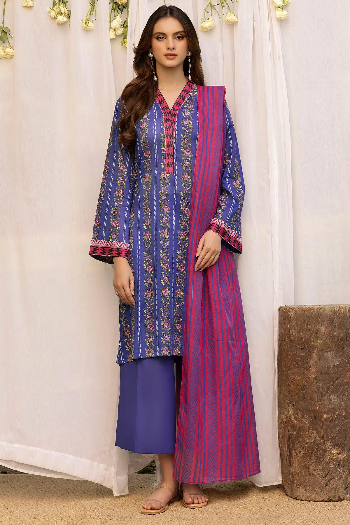 This elegant outfit features a digital printed lawn shirt in a dreamy purple haze shade, paired with a digital printed voile dupatta that adds a soft, graceful charm. The ensemble is completed with a dyed cotton trouser, ensuring a perfect balance of comfort and refined style.