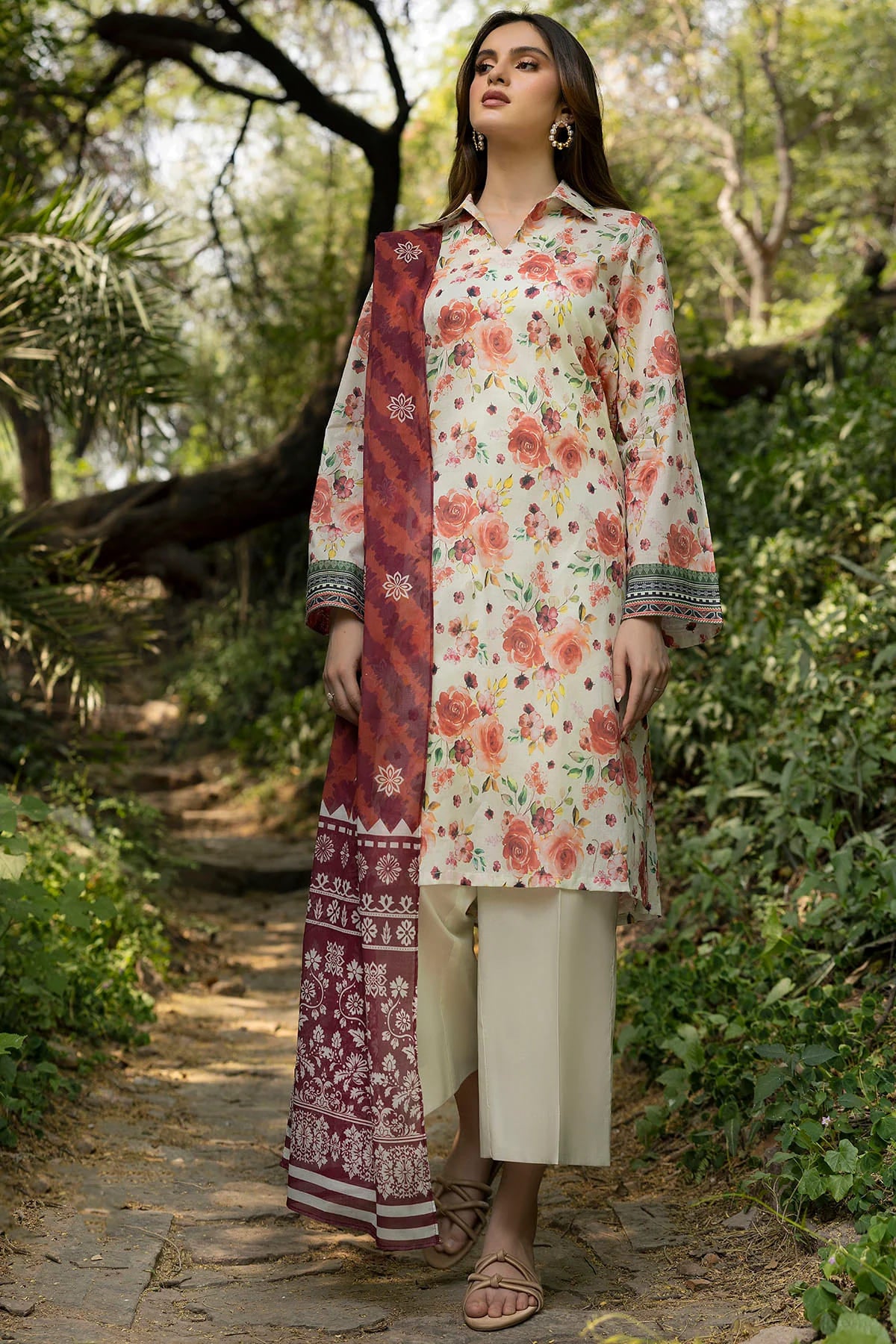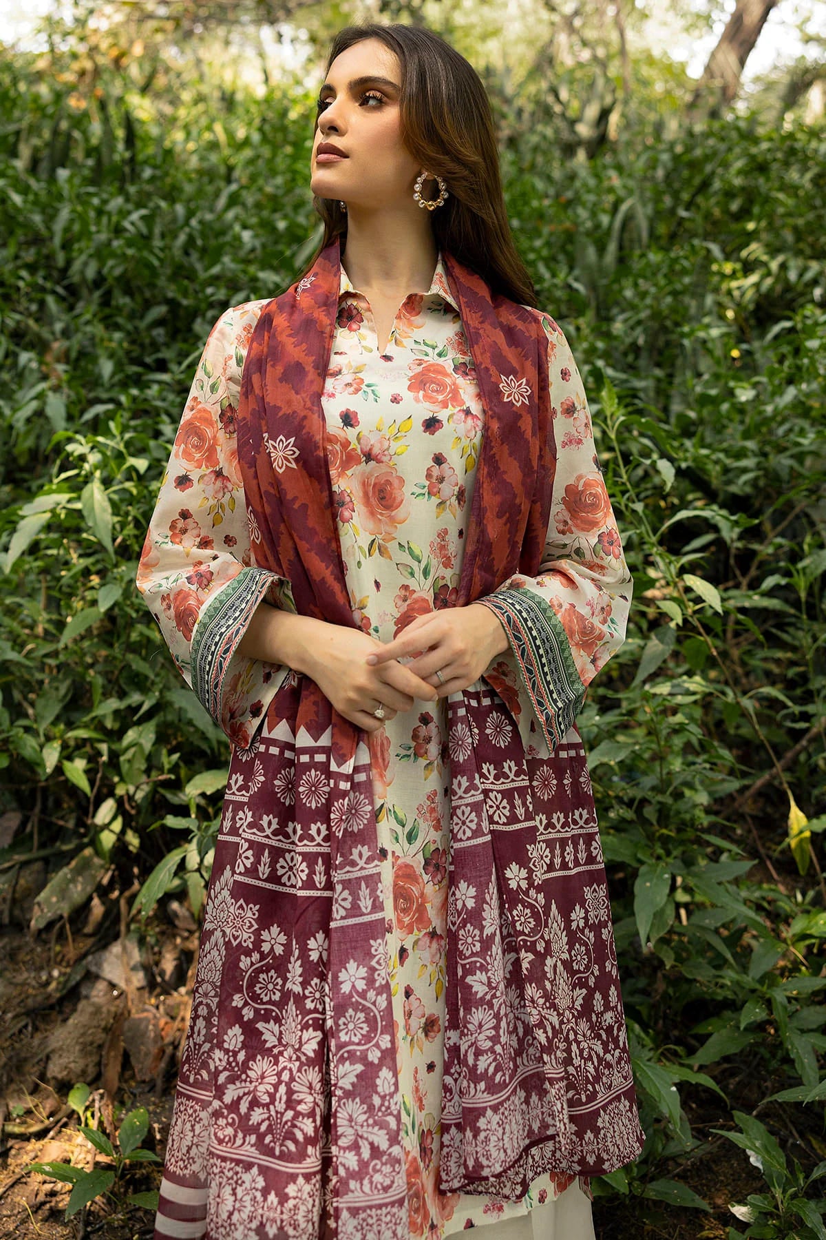 This stylish outfit features a digital printed lawn shirt in a sophisticated grey olive shade, paired with a digital printed voile dupatta that adds an elegant touch. Completing the ensemble is a dyed cotton trouser, offering a perfect blend of comfort and timeless style.