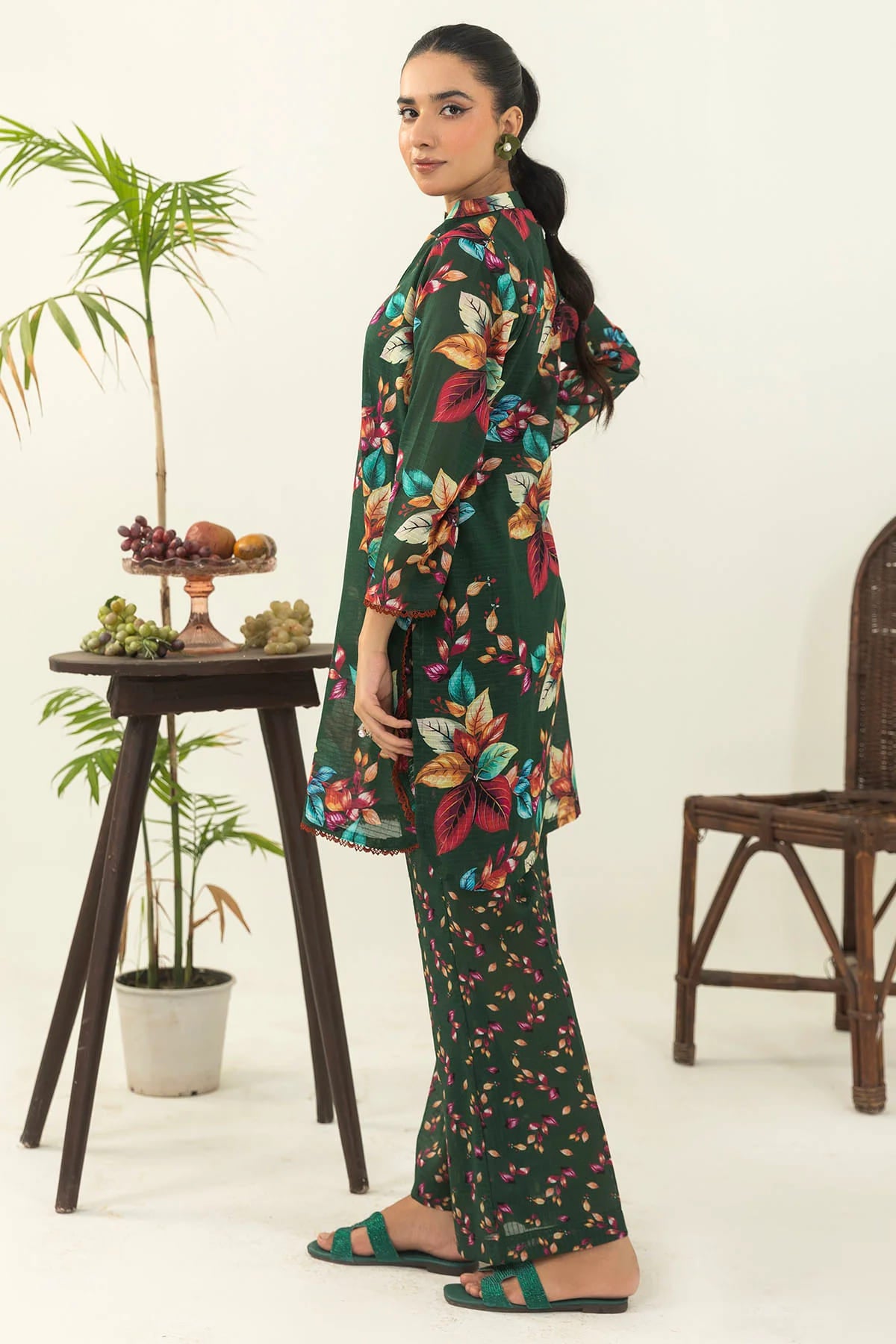 This 2-piece stitched suit features a digitally printed Bana Dora lawn shirt paired with a matching digitally printed Bana Dora trouser in a chic Camo Green shade. The breathable fabric and stylish digital print offer a perfect balance of comfort and elegance, making it an excellent choice for casual outings and everyday wear.