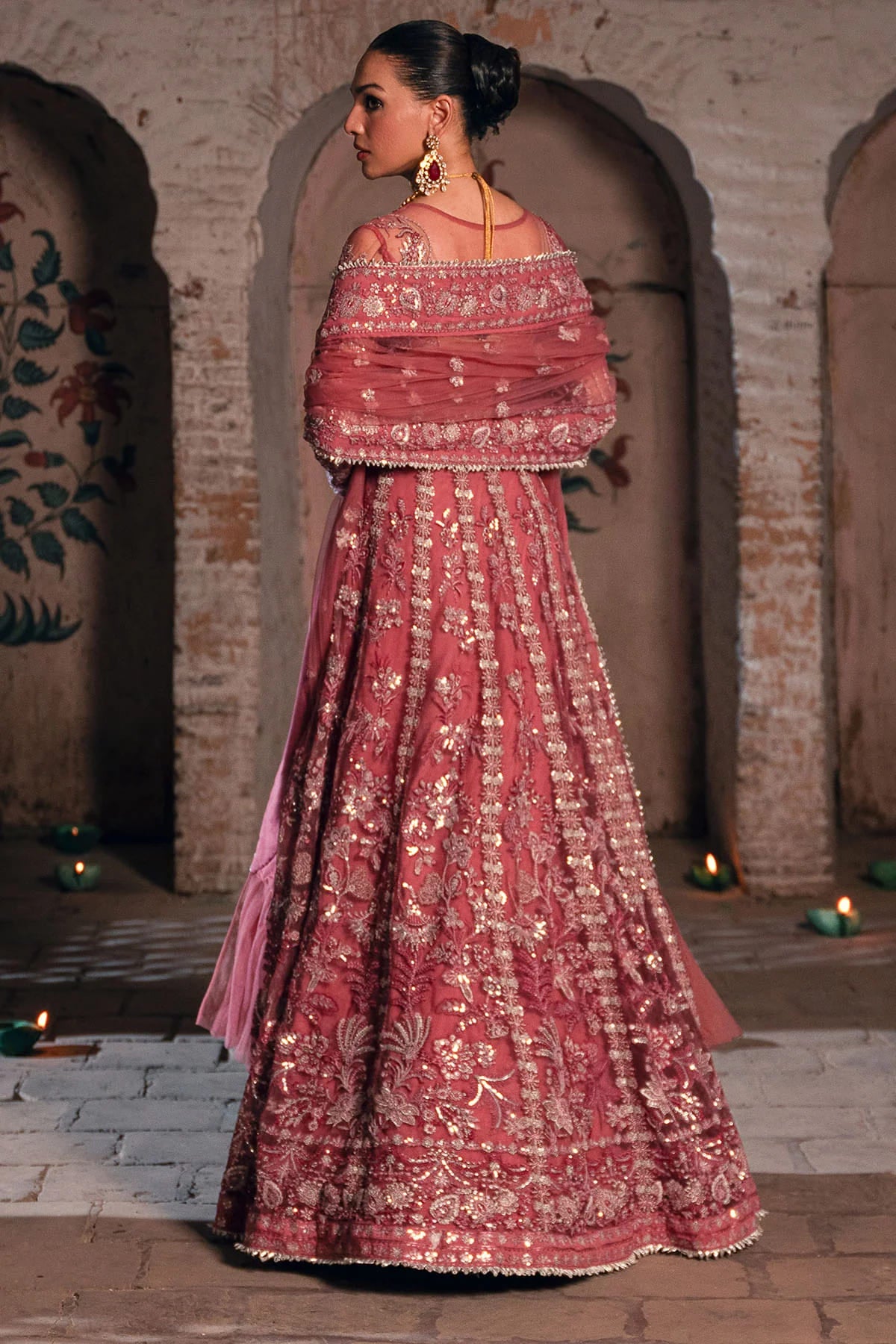 Crafted for elegance and grace, this luxurious 3-piece ensemble is a true embodiment of sophistication. The dress features an intricately embroidered net front and back, complemented by beautifully designed embroidered yokes for both front and back. Embroidered patches for the front and back daman add an extra layer of charm. The net sleeves showcase delicate embroidery, while the embroidered net dupatta with embroidered pallu patches enhances the overall opulence. Paired with a dyed silk trouser for a sleek and comfortable finish, this outfit in a stunning Pastel Red hue is perfect for upscale occasions where you want to leave a lasting impression.