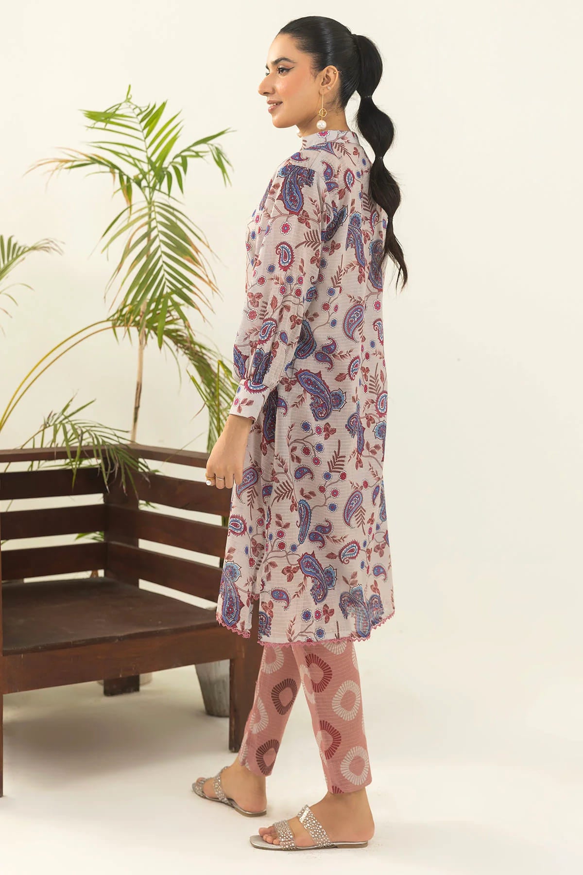 This 2-piece stitched suit features a digitally printed Bana Dora lawn shirt paired with a matching digitally printed Bana Dora trouser in a beautiful Floral design. With its breathable fabric and lively digital print, this outfit blends comfort with style, making it an ideal choice for casual gatherings and everyday wear.
