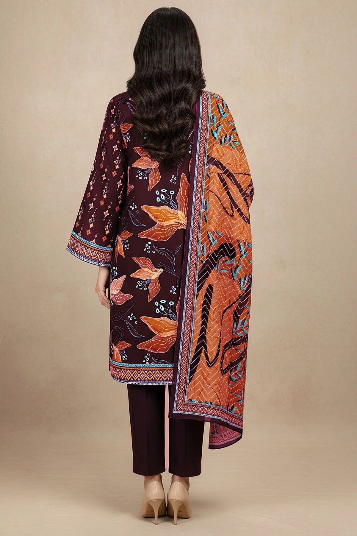This premium three-piece ensemble comes in the warm and refined shade of Cocoa Bean, crafted from high-quality khaddar. It features a stylish printed premium khaddar shirt, paired with a beautifully coordinated printed premium khaddar shawl that adds elegance and warmth. The look is completed with a soft dyed premium khaddar trouser, offering comfort and timeless sophistication—ideal for a classic seasonal wardrobe.